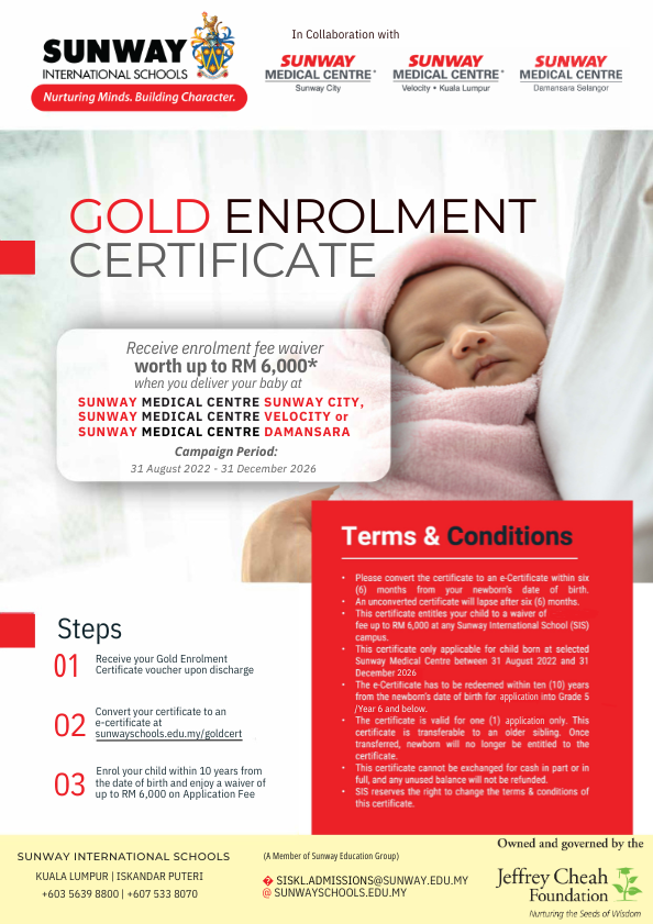 - Sunway International Schools (SIS) reserves the right to change the terms and conditions of this certificate.